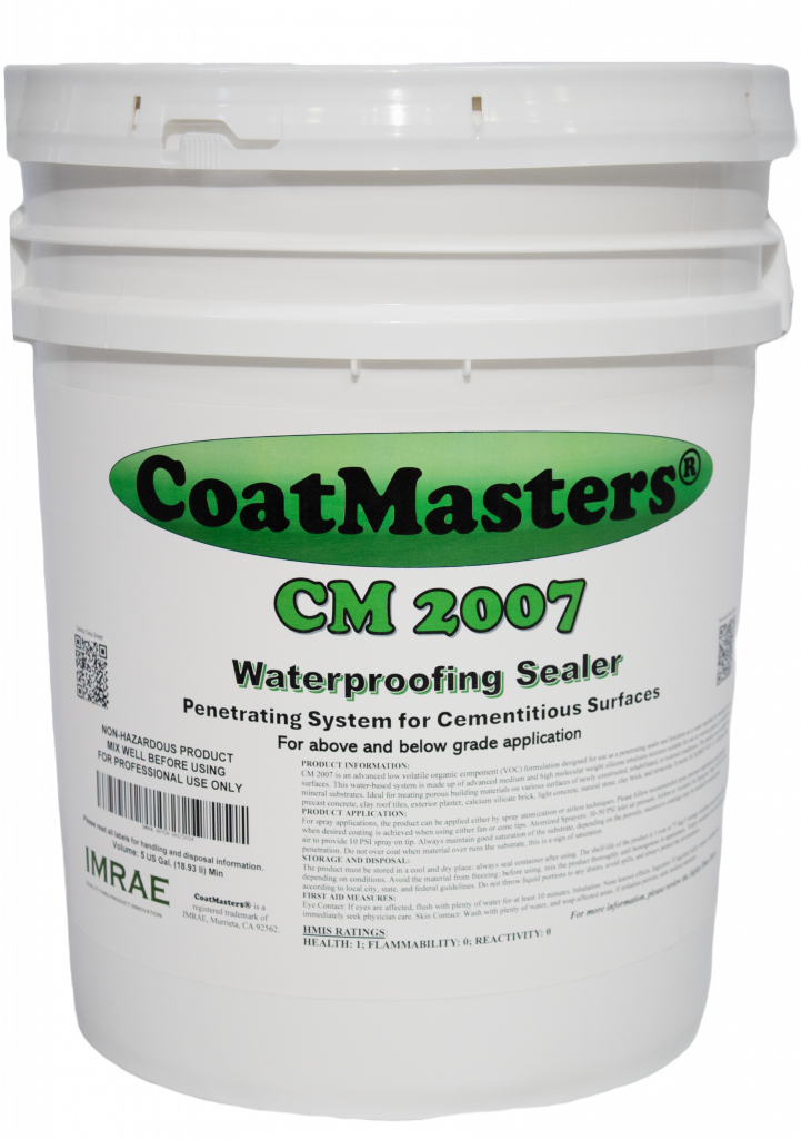 CM 2007 is an advanced low VOC formulation designed for use as a penetrating coating, it comes in clear to opaque color and commonly used for above grade application. For below ground applications requiring hydrolytic stability (i.e. no change in color) and no hydrostatic resistance, the CM2007 can be used. The product is a waterbased type system and usually packaged in 5-gallon pail and 55-gallon drums containers.